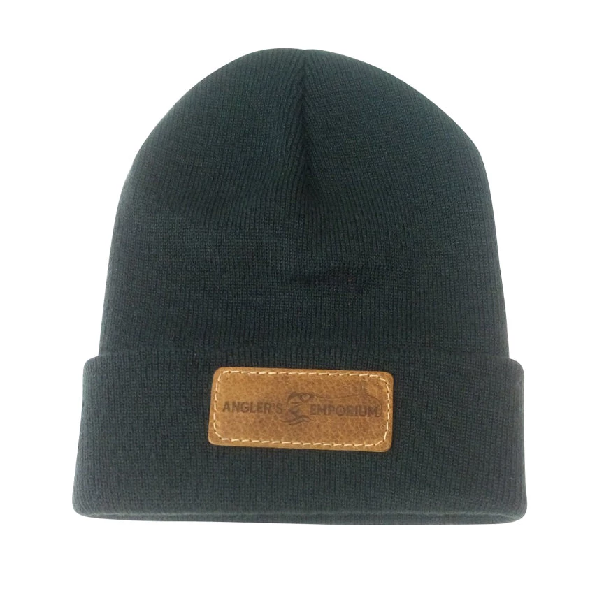 Show your support for Angler’s Emporium and stay warm at the same time with this dark green beanie. This 100% acrylic hat with an authentic American Bison leather patch is handcrafted in Maine. Four top-seam knit. One size fits most.