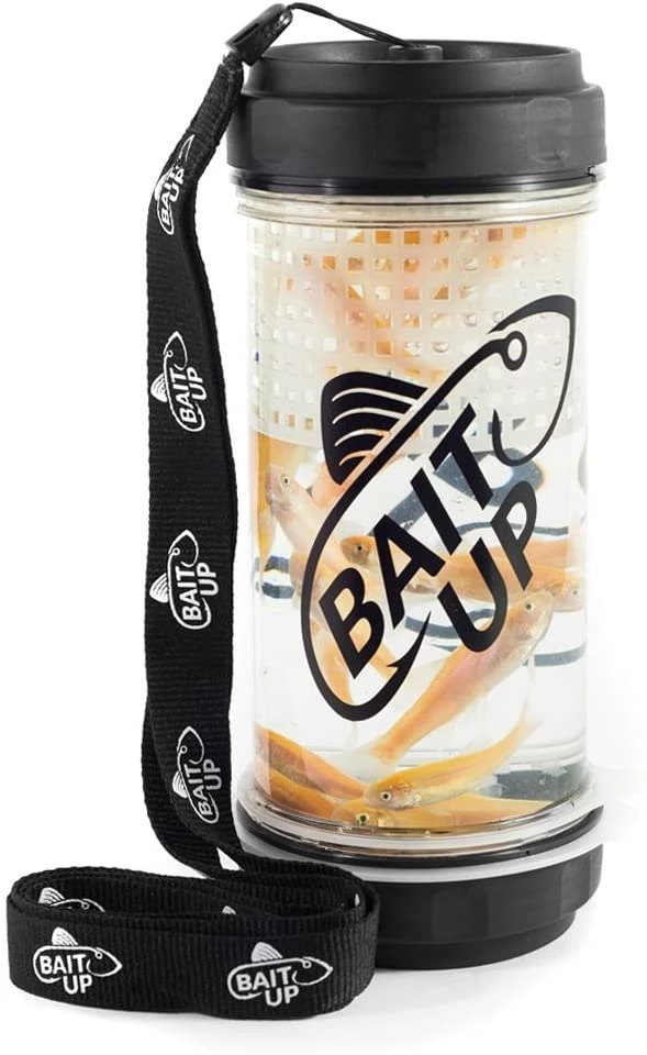 Bait Up allows the live bait angler to conveniently keep, carry, view, and select live bait without hindrance to the movements or demands required to be successful at fishing with live bait.