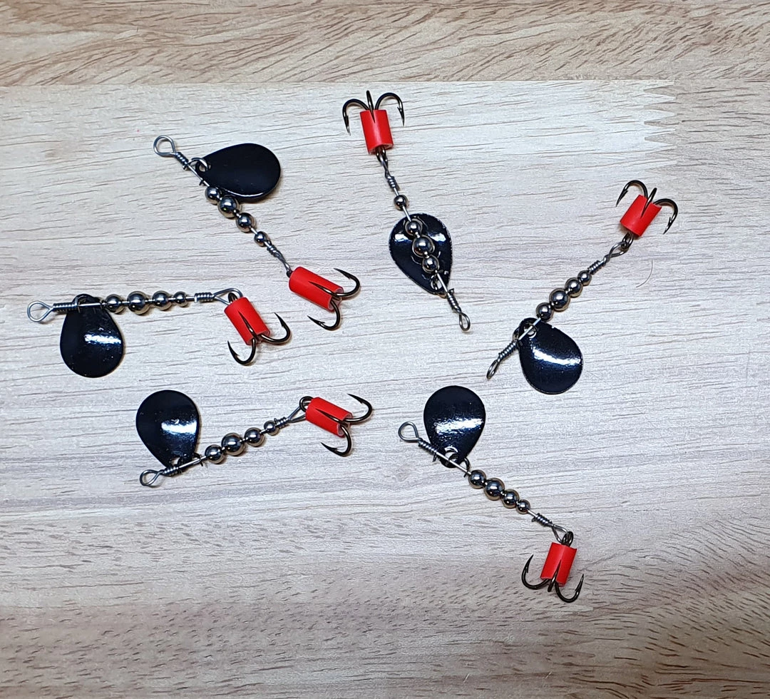 Inline spinners are classic lures. These spinners are hand made with Colorado blades that flutter with the slightest motion. Great for trout, panfish, walleye, perch, bass and other species of fish.