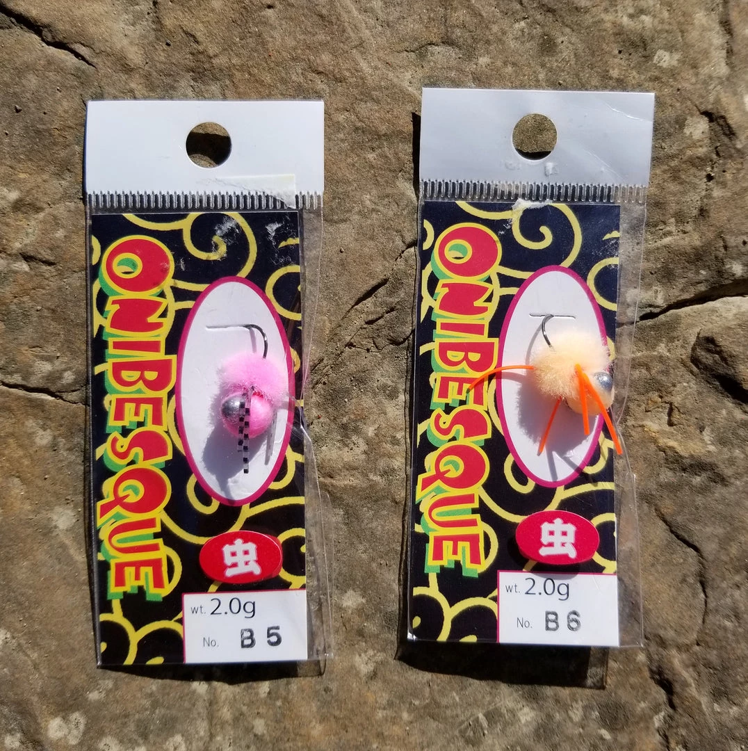 These Onibesque weighted glow egg fly rubber legs fishing lures from Japan are difficult or impossible to find in America. But they work, especially on stocked fish, steelhead and salmon. You can be the only person on your local water to have them. Size the advantage!