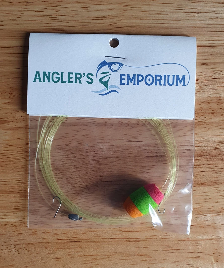 These complete rigs are ready to attach to any fixed length fishing rod. Tied on greed line they include foam floats, weights and size 12 hooks. Just cut to length and attach to your rod and you are ready to fish!