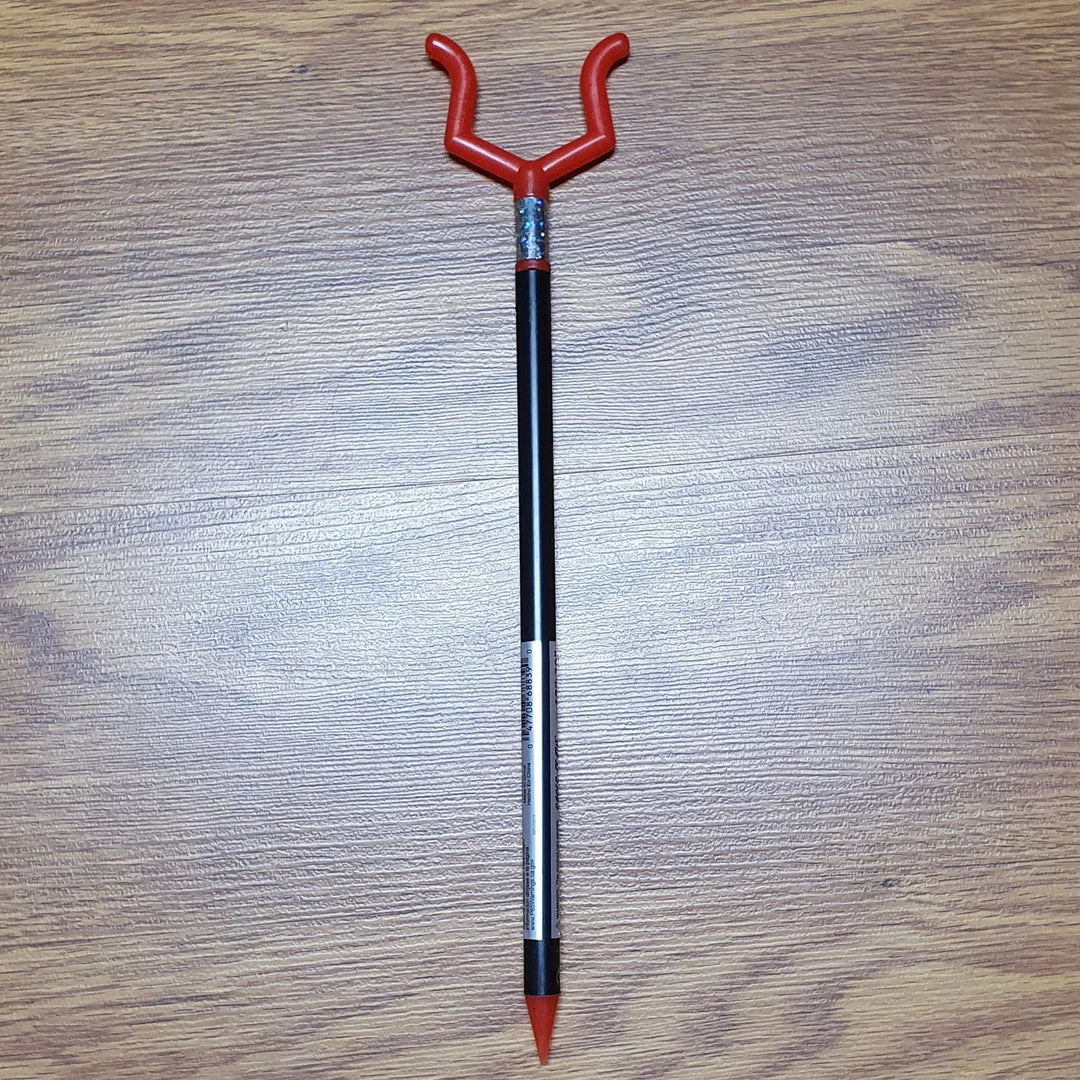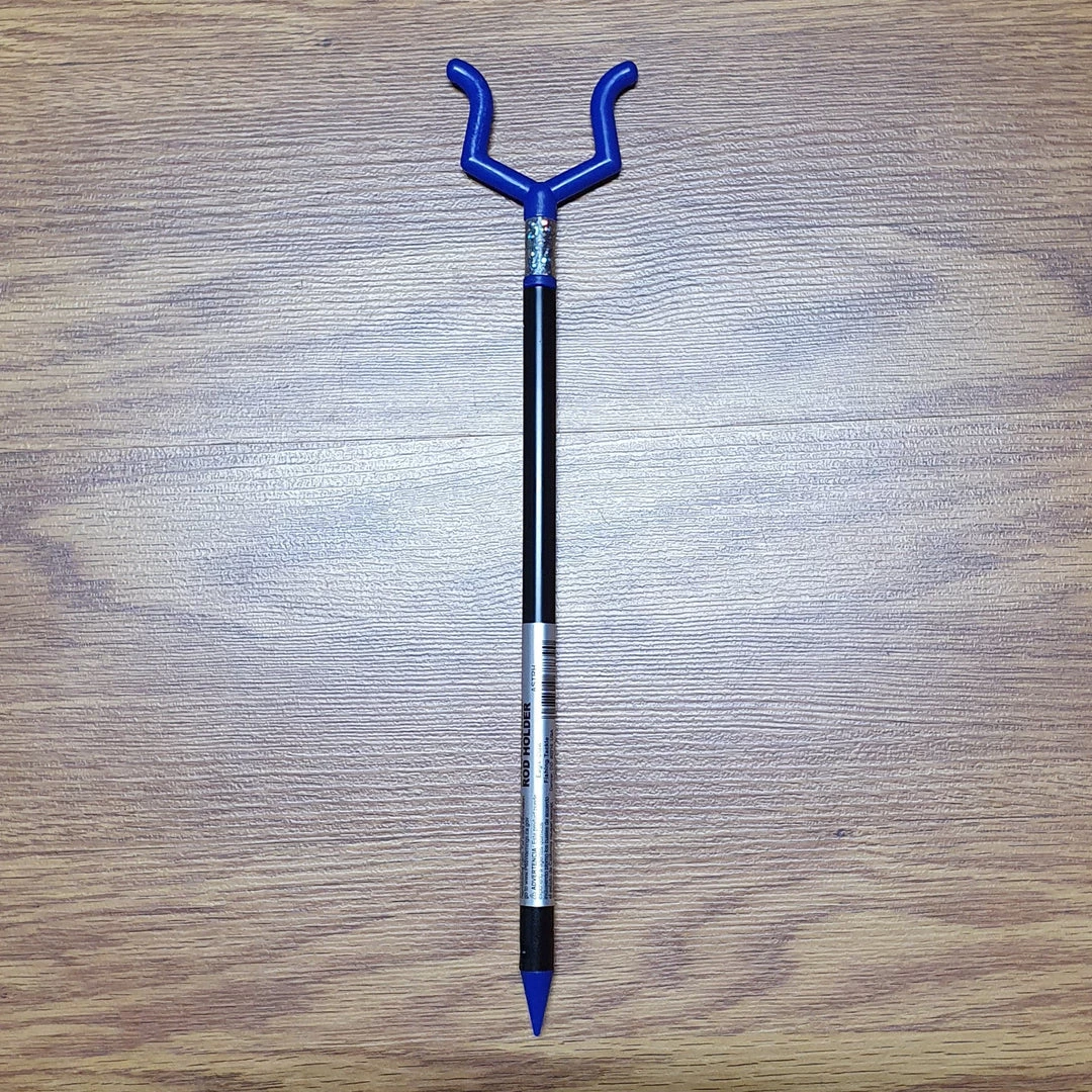 These metal rod holders extend from 12″ to 30″. The plastic tops are flared out to keep your rod from popping out.Â