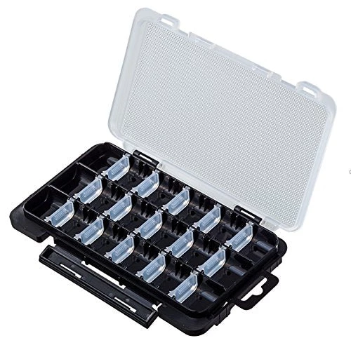 These slim cases are great for small lures, hooks, flies and more. They’re under 3/4 of an inch thick. They’re incredibly well made in Japan, with adjustable compartments and a firm snap lock. You can also clip multiple boxes together securely with ease.