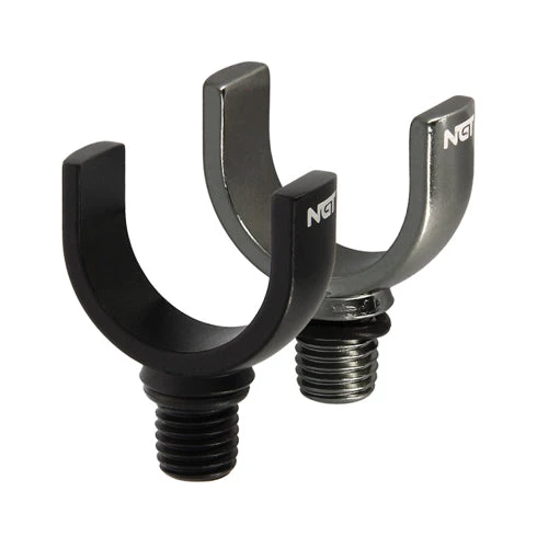 These rod rests fit any bank sticks. They’re designed to hold carp rods but they work with most fishing poles. The insides of these metal rests are padded to protect rods from damage.