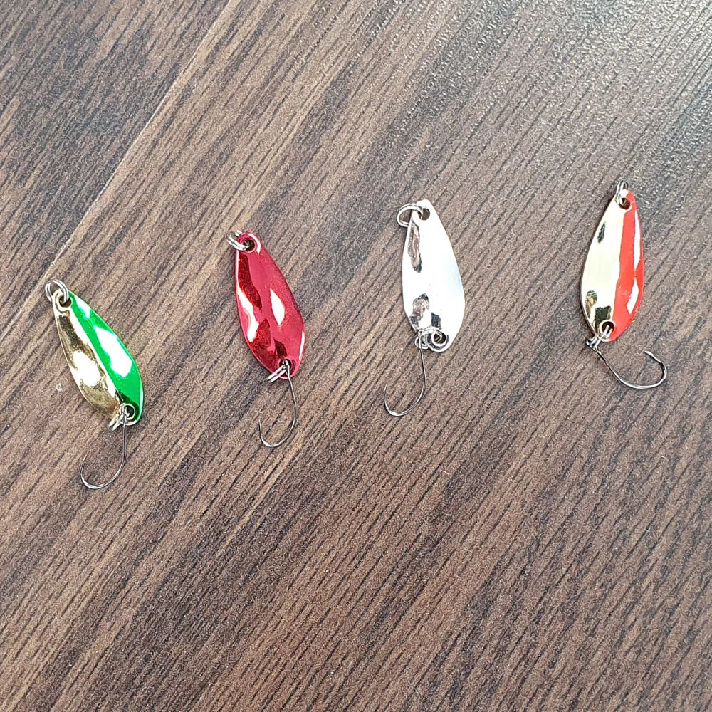 The Solfiesta 2.5g Mini Spoons from Japan come in a variety of fish catching colors. Rigged with barbless hooks they are perfect for trout and panfish.