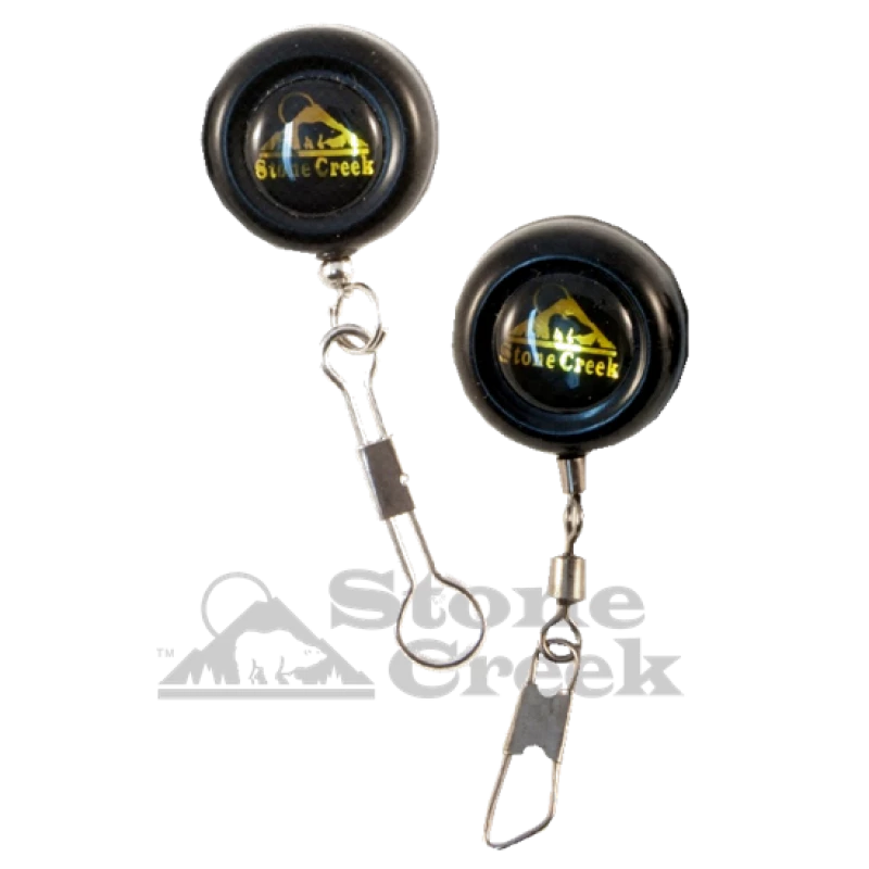 These tool retractors or “zingers” pin or clip to your vest and hold tools, floatants, drying cloths, etc. The stainless steel cord inside extends 18 inches.