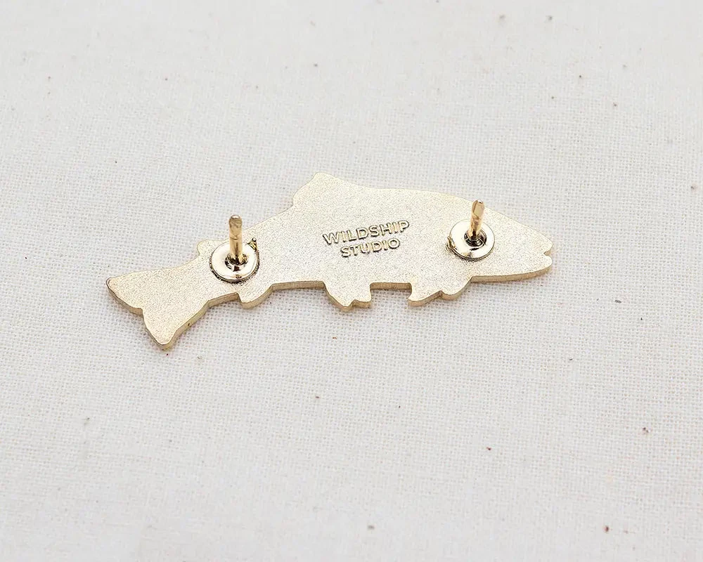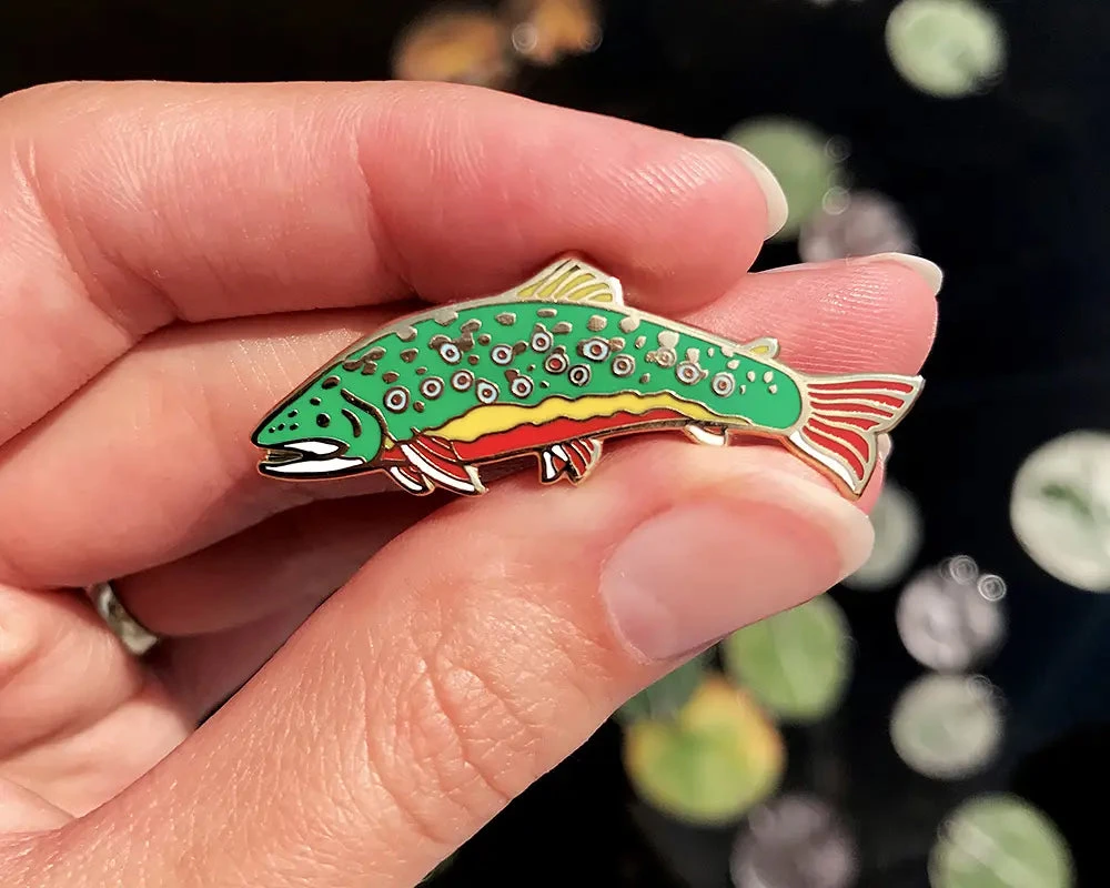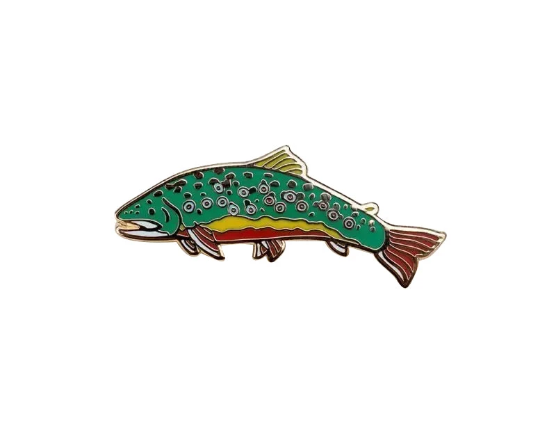 Catch this brookie. Made with high quality, polished gold plating and hard enamel.